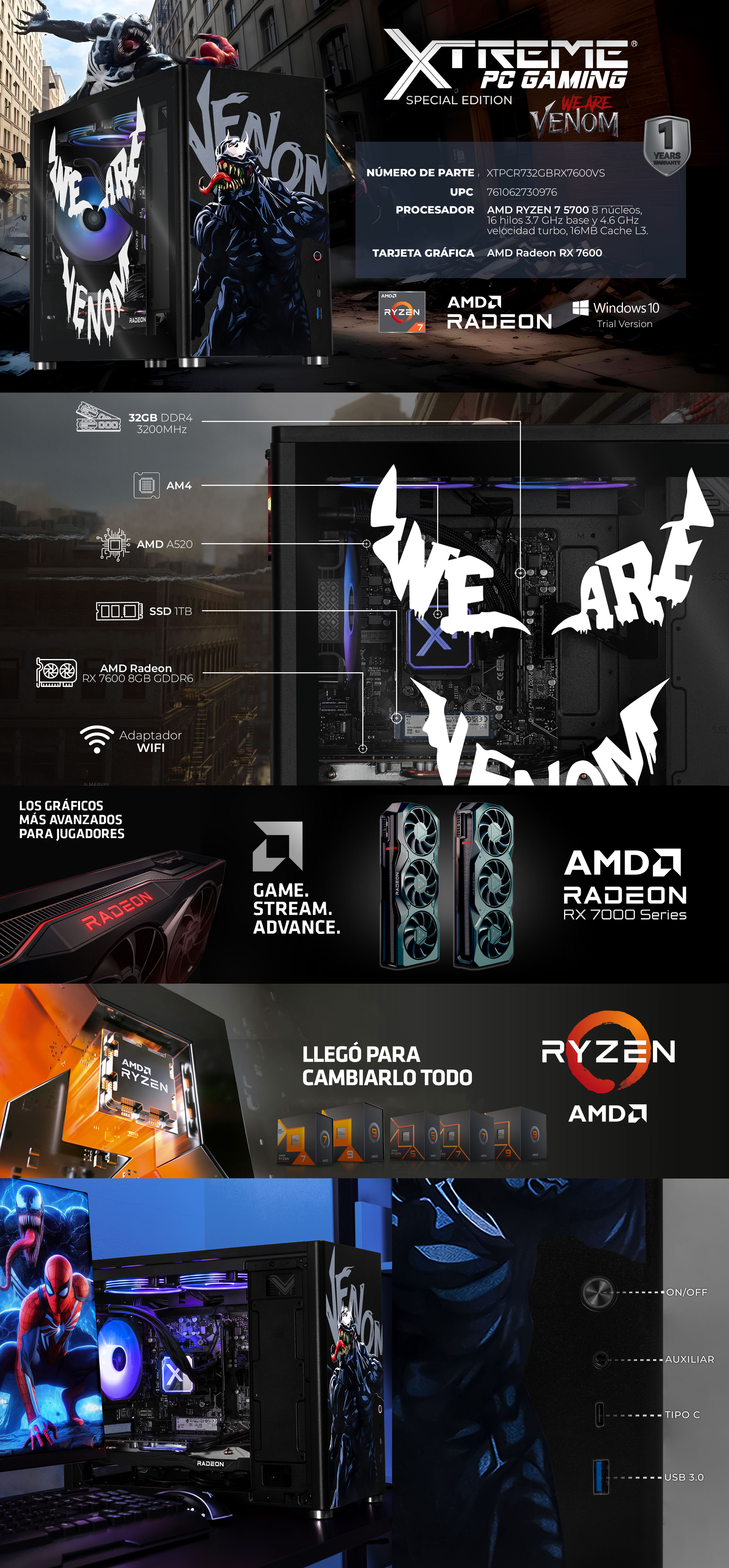 Equipada con una tarjeta gráfica AMD Radeon RX 7600 y un procesador AMD Ryzen 7 5700, este equipo llevará tu experiencia gaming al siguiente nivel, con gráficos ultra realistas y una velocidad inigualable en juegos exigentes. Con 32GB de RAM y un SSD de 1TB, tendrás una ejecución fluida y tiempos de carga extraordinarios.