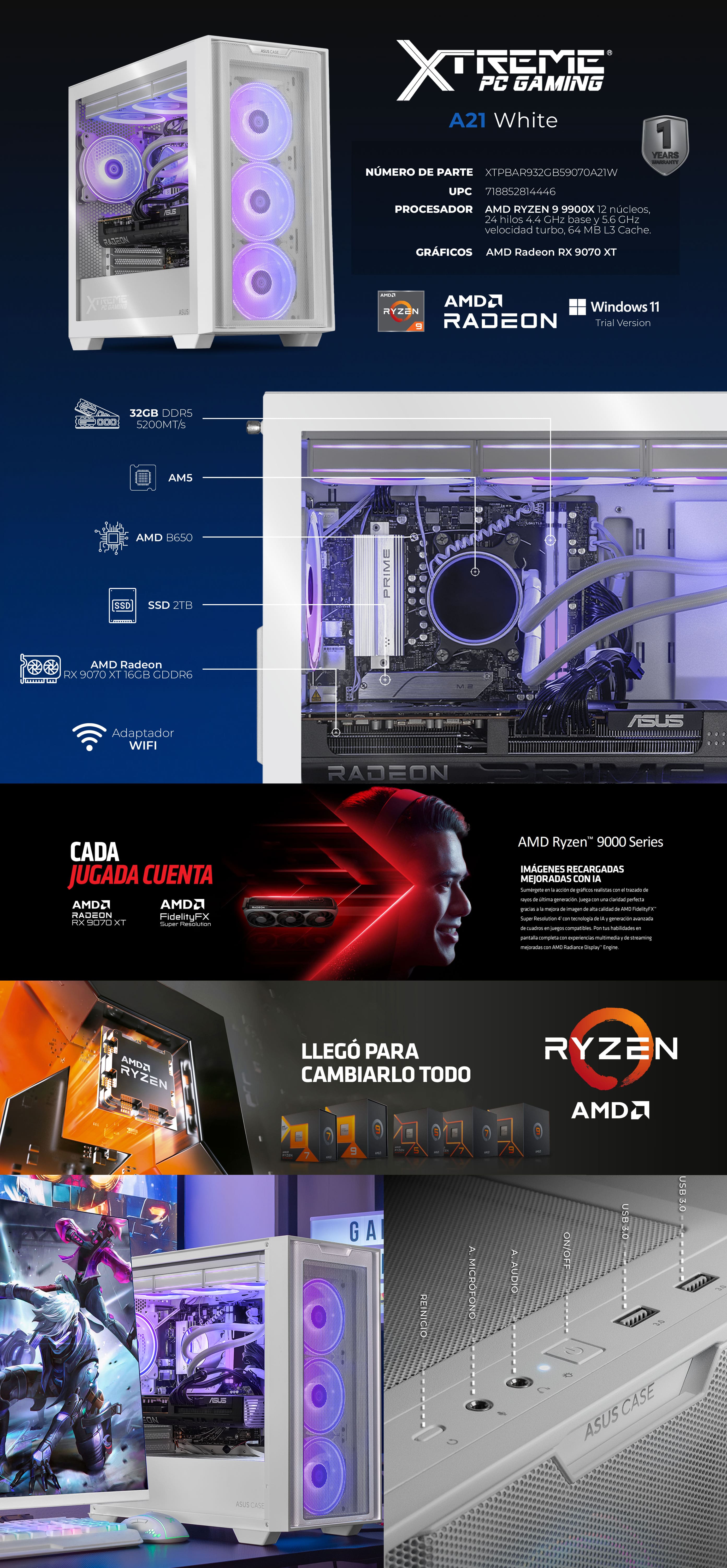• Gráficos de nueva generación: AMD Radeon RX 9070 XT 16GB GDDR6, ideal para eSports y streaming.