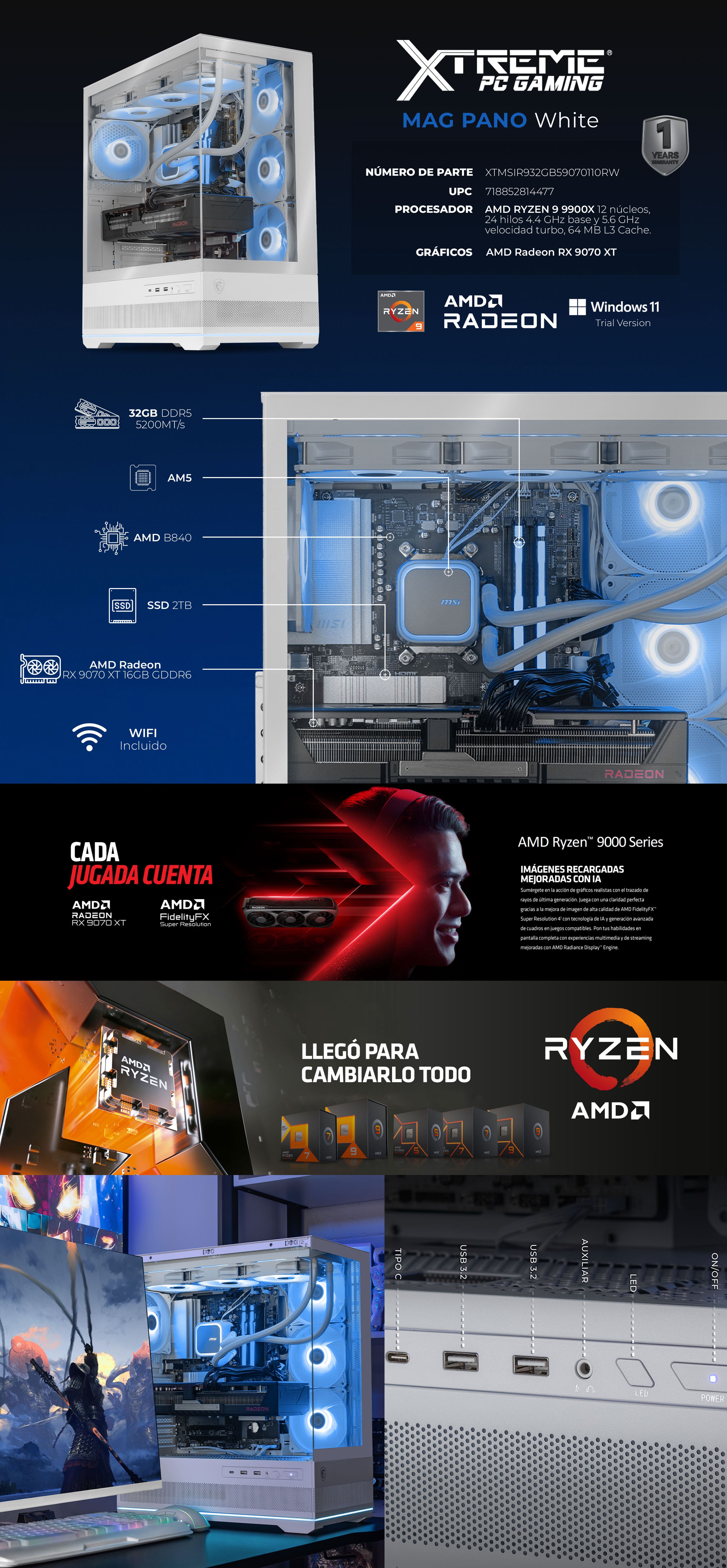 • Gráficos de nueva generación: AMD Radeon RX 9070 XT 16GB GDDR6, ideal para eSports y streaming.