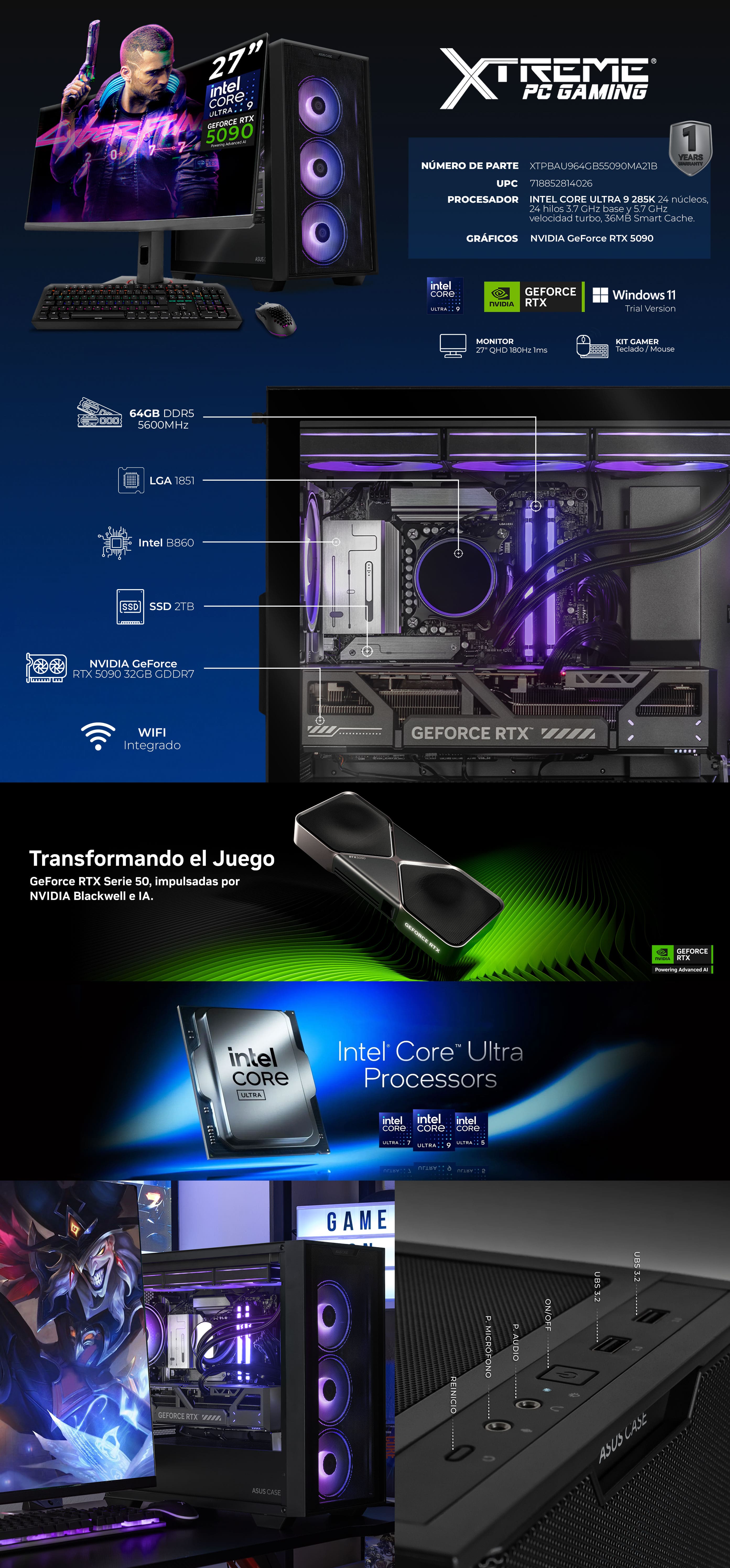 • Gráficos imponentes: NVIDIA GeForce RTX 5090 32GB GDDR7 para gaming 4K con Ray Tracing.