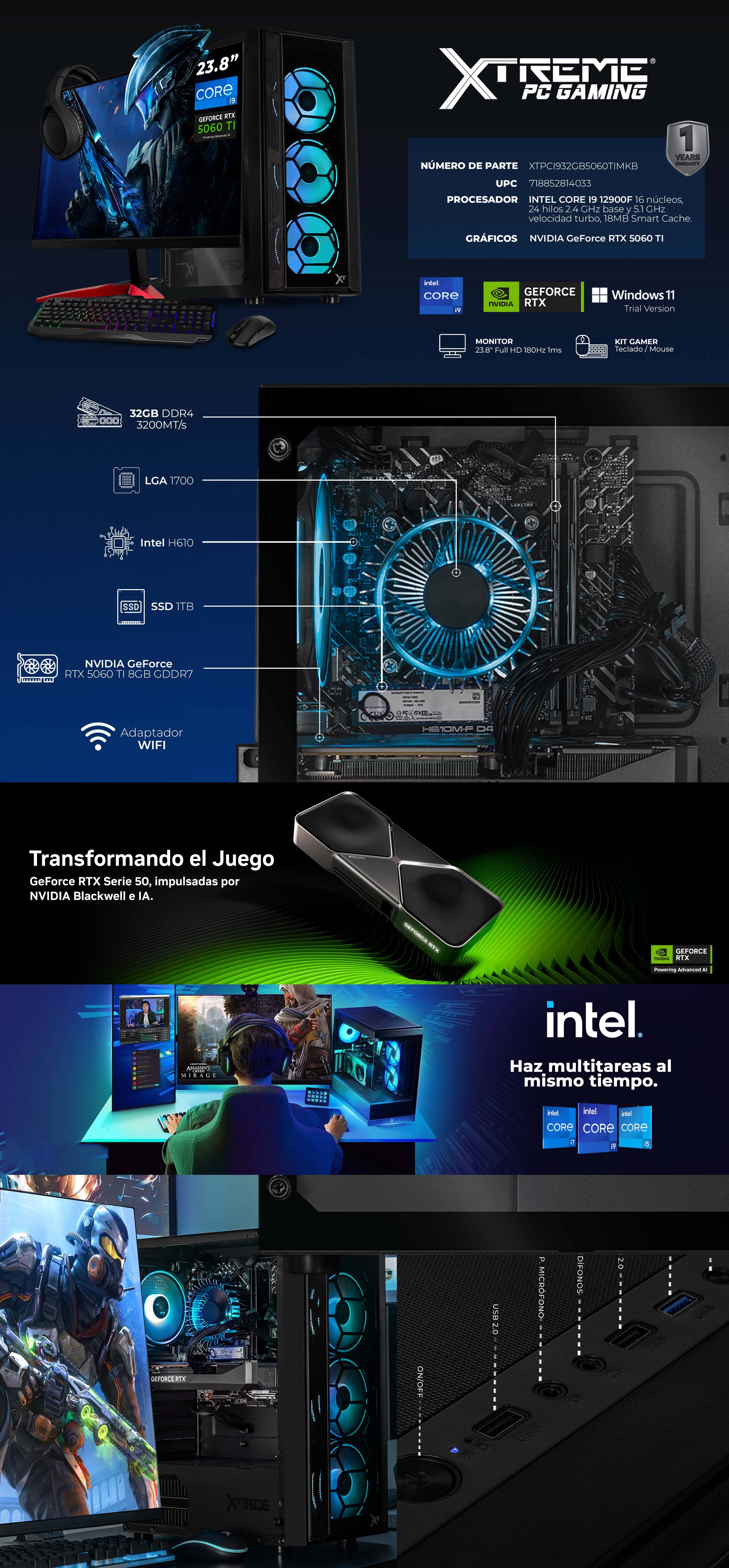 Be a Xtremer, elegir tu PC nunca había sido tan fácil. En Xtreme PC Gaming lo hacemos simple: Integramos equipos con lo último en tecnología, componentes originales y listos para usarse. Cada PC está respaldada por Xtreme Shield, con 12 meses de garantía y soporte técnico de por vida. Creamos experiencias inolvidables para gamers, profesionales y entusiastas, con potencia, calidad y pasión en cada detalle.