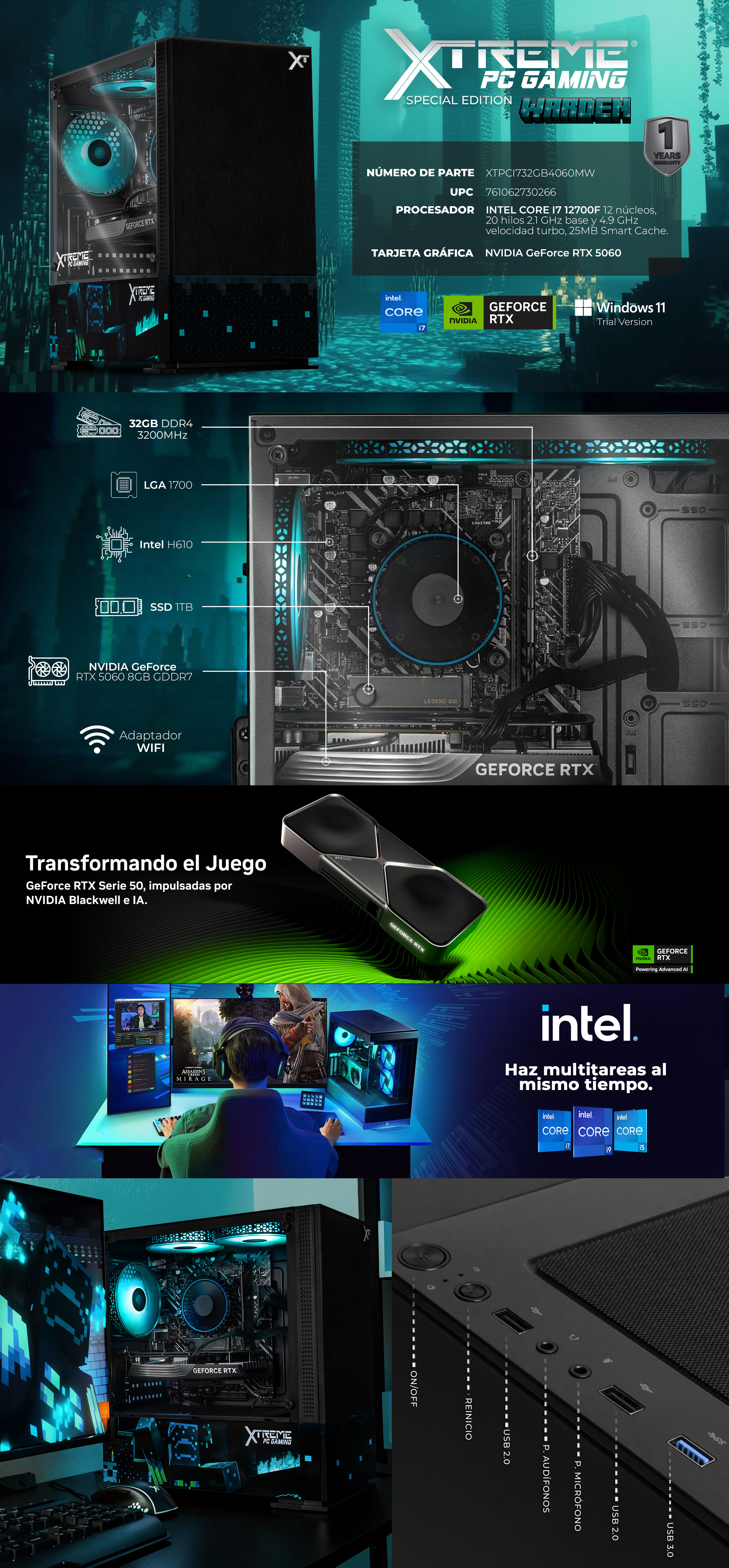 Be a Xtremer, elegir tu PC nunca había sido tan fácil. En Xtreme PC Gaming lo hacemos simple: Integramos equipos con lo último en tecnología, componentes originales y listos para usarse. Cada PC está respaldada por Xtreme Shield, con 12 meses de garantía y soporte técnico de por vida. Creamos experiencias inolvidables para gamers, profesionales y entusiastas, con potencia, calidad y pasión en cada detalle.