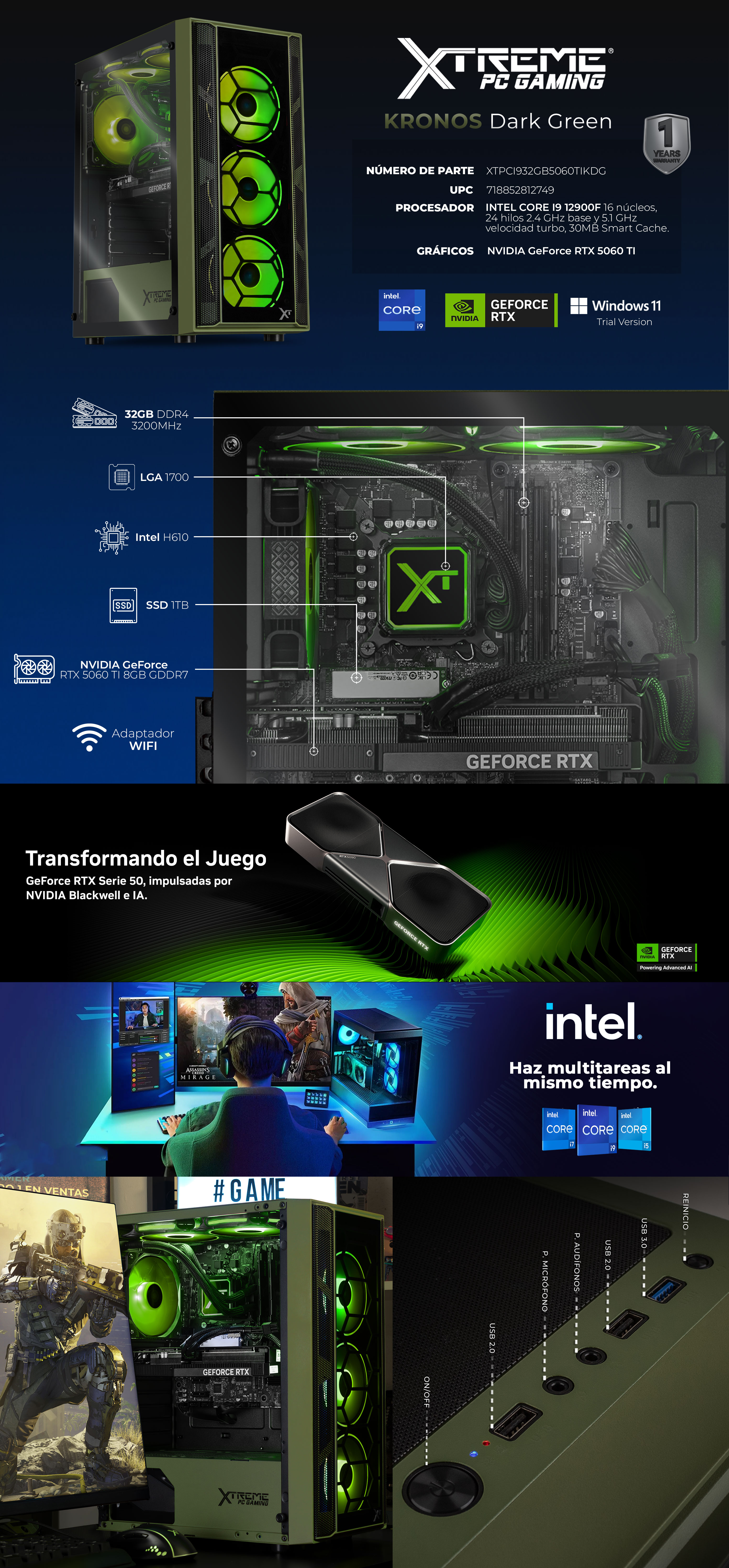 Be a Xtremer, elegir tu PC nunca había sido tan fácil. En Xtreme PC Gaming lo hacemos simple: Integramos equipos con lo último en tecnología, componentes originales y listos para usarse. Cada PC está respaldada por Xtreme Shield, con 12 meses de garantía y soporte técnico de por vida. Creamos experiencias inolvidables para gamers, profesionales y entusiastas, con potencia, calidad y pasión en cada detalle.