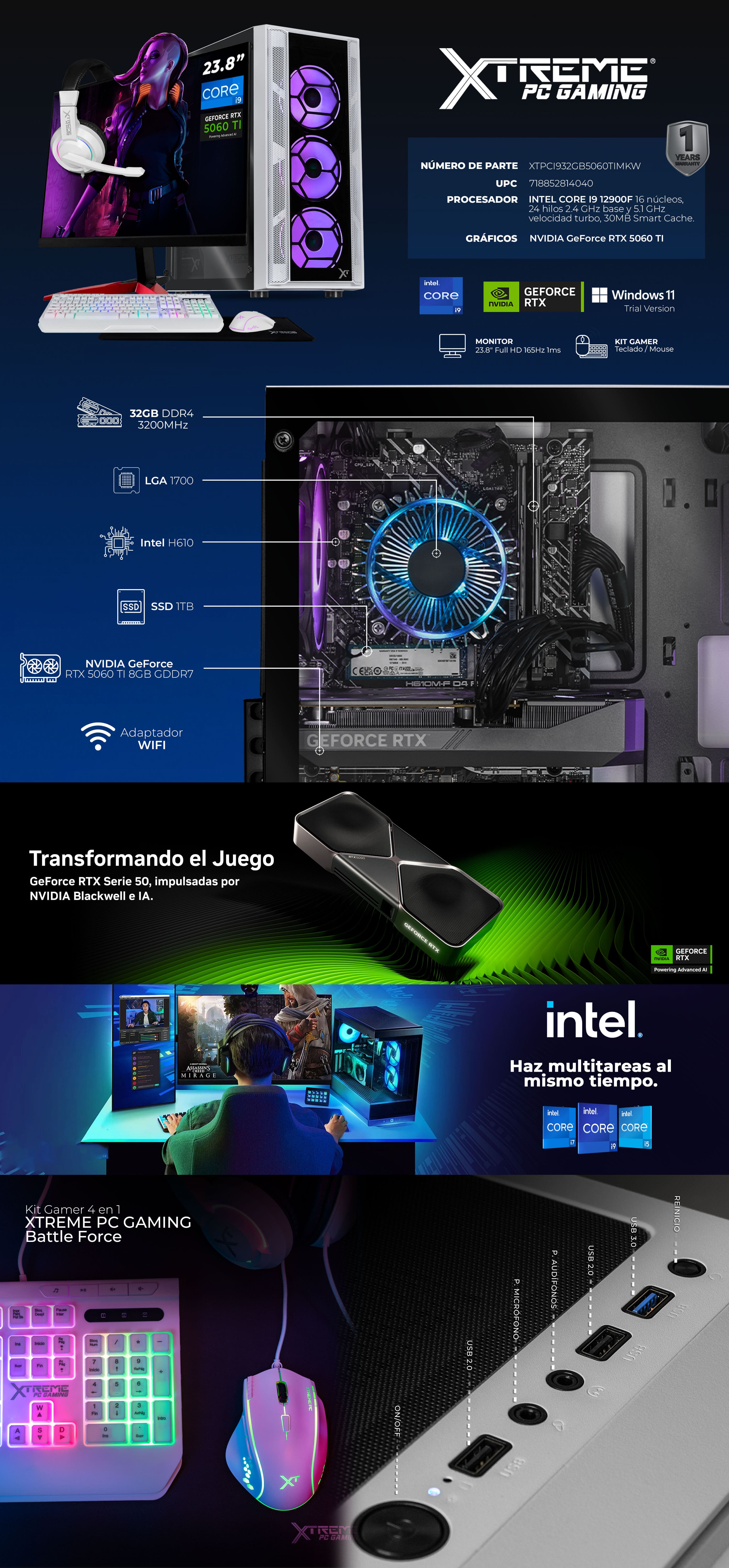 Be a Xtremer, elegir tu PC nunca había sido tan fácil. En Xtreme PC Gaming lo hacemos simple: Integramos equipos con lo último en tecnología, componentes originales y listos para usarse. Cada PC está respaldada por Xtreme Shield, con 12 meses de garantía y soporte técnico de por vida. Creamos experiencias inolvidables para gamers, profesionales y entusiastas, con potencia, calidad y pasión en cada detalle.