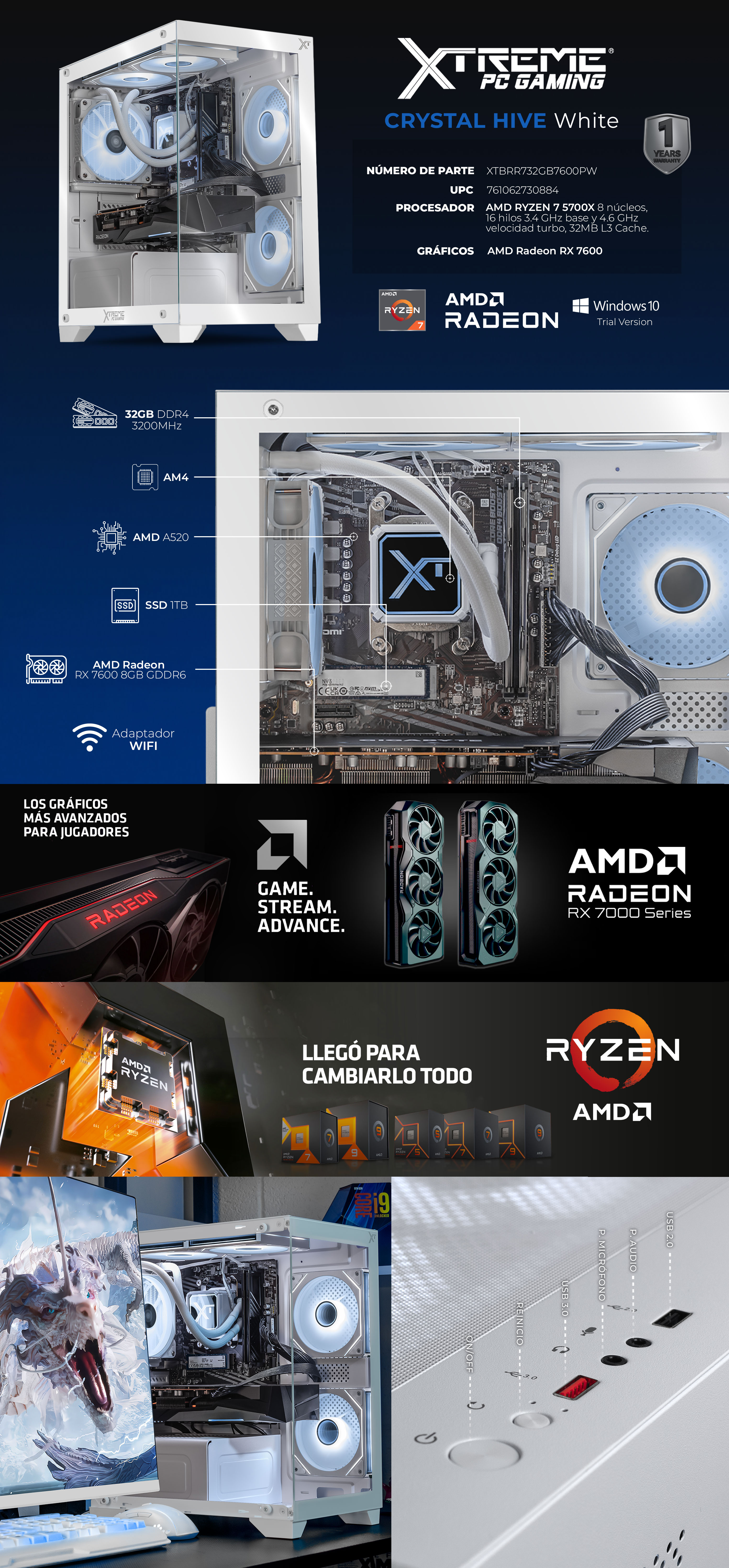 Equipada con una tarjeta gráfica AMD Radeon RX 7600 y un procesador AMD Ryzen 7 5700X, este equipo llevará tu experiencia gaming al siguiente nivel, con gráficos ultra realistas y una velocidad inigualable en juegos exigentes. Con 32GB de RAM y un SSD de 1TB, tendrás una ejecución fluida y tiempos de carga extraordinarios.