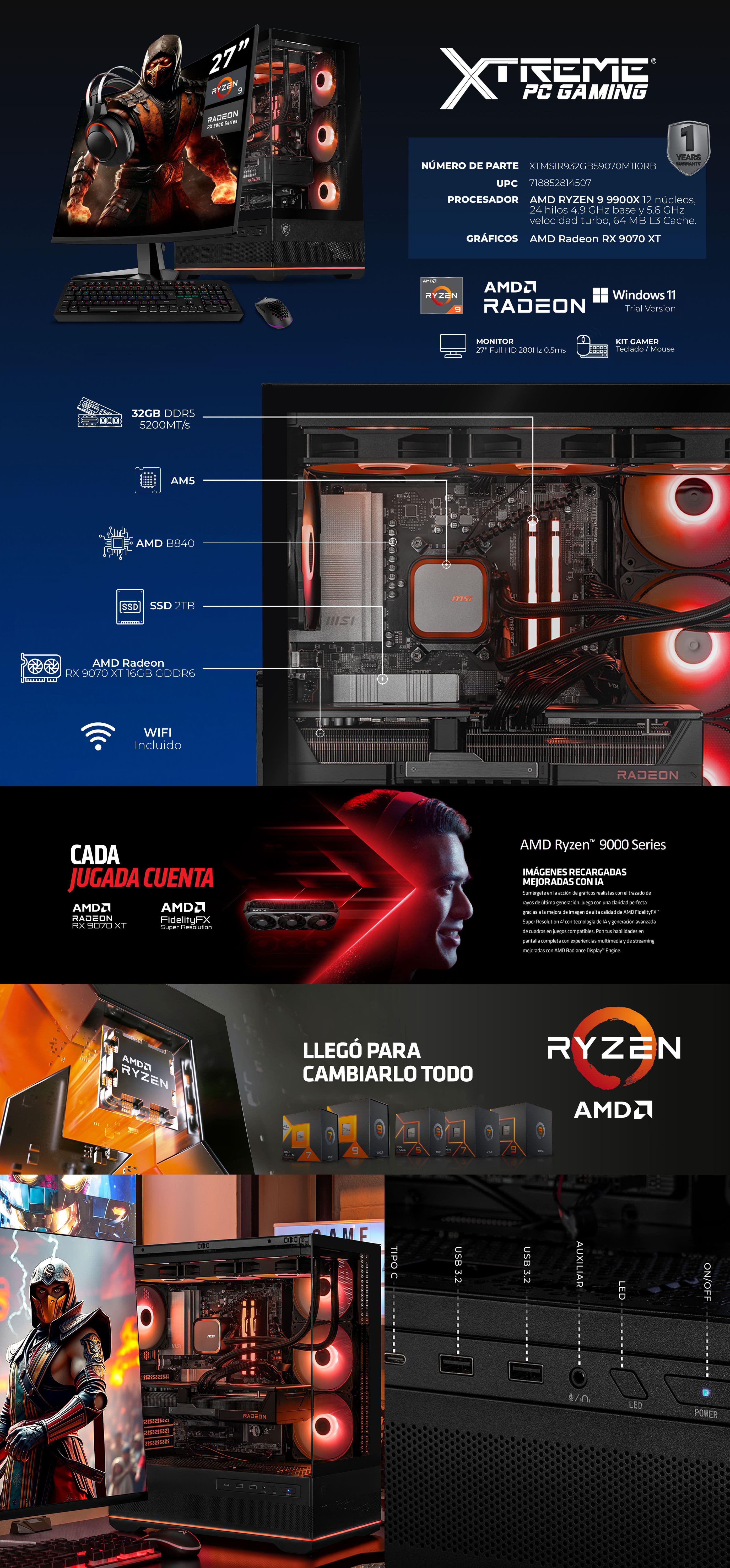 • Gráficos de nueva generación: AMD Radeon RX 9070 XT 16GB GDDR6, ideal para eSports y streaming.